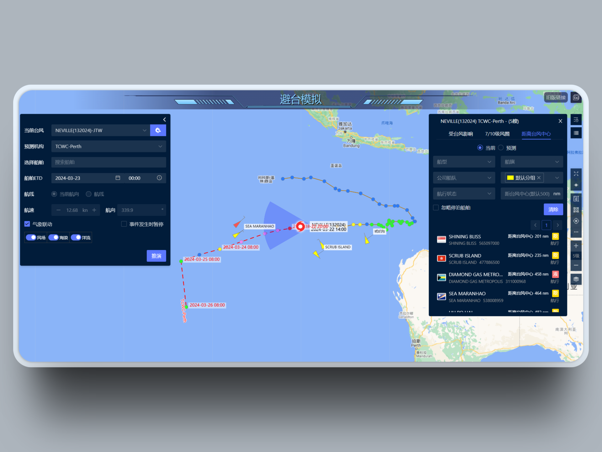 结合 智能航线规划与避台模拟预警以及应急协同工具,在台风、地缘冲突和港口突发事件等复杂环境下,为船队提前给出预警与规避方案,最大限度降低事故和合规风险。